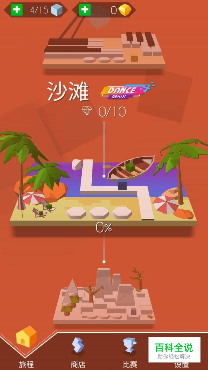 首先,打开跳舞的线首页,会发现在底端有旅程、商店、比赛、设置四个选项,我们可以选择自己想要的进行游戏