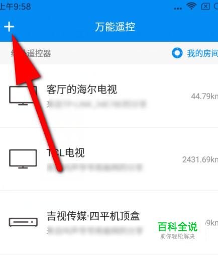 手指轻点一下“万能遥控”,转到另一个界面,手指再点左上角的+号