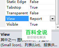 然后右键单击这个List Control,选择属性。在属性里找到View,改成Report,如图:
