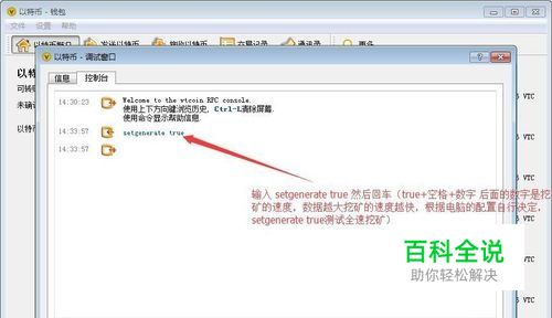 以特币电脑挖矿教程 打开以特币钱包,顶部点击帮助—调试窗口—控制台 在窗口底部框框出输入 setgenerate true 然后回车(true+空格+数字 后面的数字是挖矿的速度,数据越大挖矿的速度越快,根据电脑的配置自行决定,setgenerate true测试全速挖矿)