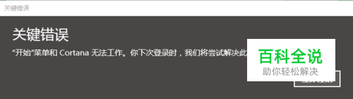 解决--关键错误:开始菜单和cortana无法工作