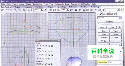 3dmax动漫设计的视图切换及模型调整教程,切换至Left视图。从上至下,画前边脸的轮廓,再画后边脸的轮廓。如图2.3所示。前一步骤画的是从正而上看,头部的外形。这一步画的是从侧面看,头部的外形。观察Top视窗,您会发现,正而的两根曲线与侧面的两根曲线成一个十字交叉形。