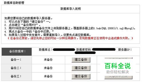 假如你的空间商用的是星外虚拟主机管理系统,这种系统支持第一种备份文件的还原和导入。星外系统的数据库导入分为5个步骤,大家直接到空间商的数据库管理里面就可以看到,这里不再叙述,发个截图给大家看。