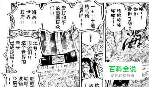 我用以下两个截图对黑胡子的梦想进行更准确的诠释。上面的图黑胡子邀请艾斯所说的话明确表达了黑胡子想要成为海贼王进而称霸世界的意愿;这张图表明了黑胡子心目中的对手,如果黑胡子仅仅想得到OP,那么他不会把全世界的人作为敌人。