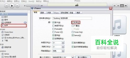 首先打开iTunes软件,找到偏好设置 ,勾选铃声项,让铃声的标志显示在左侧栏,选择铃声添加到资料库中。