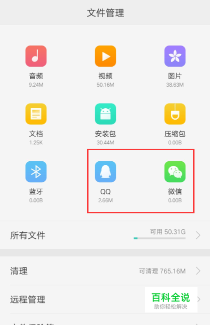 可以通过【文件管理】--【微信】、【QQ】--视图找到视频文件删除即可。(ColorOs3.0系统机型) 下面以qq为例: