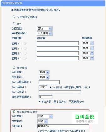 在无线设置-无线安全设置中设置无线信号加密信息