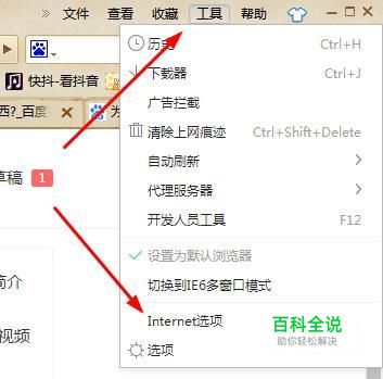 首先我们打开浏览器,然后在浏览器的右上角点击“工具”展开菜单栏,选择“Internet选项”进入。