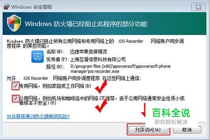 首先打开迅捷苹果录屏精灵,在弹出的window安全警告窗口勾选专用网络和共用网络并允许访问。