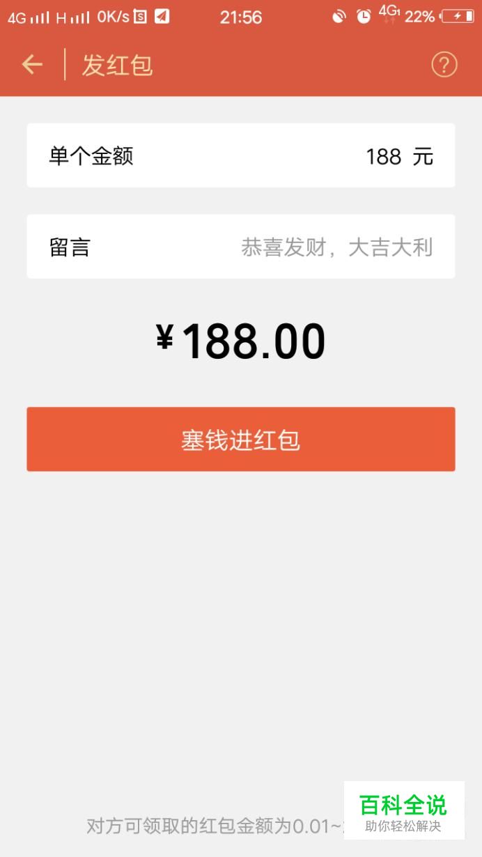 输入红包金额即可,输入数字应大于等于0.01,小于等于200,再输入留言即可。
