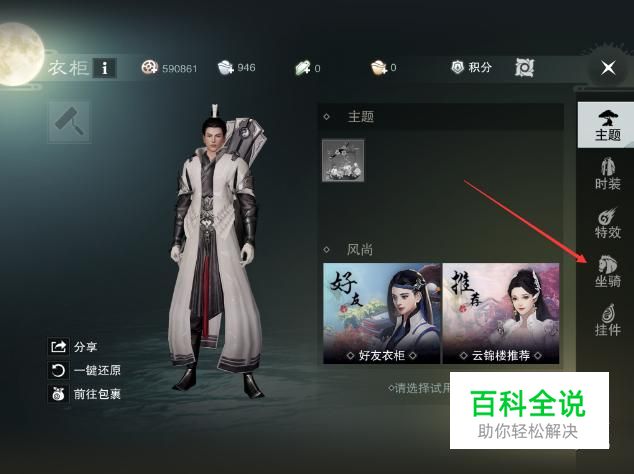 玩家想要骑马,首先需要给角色装备上坐骑,具体操作为首先需要点击【衣柜】按键。