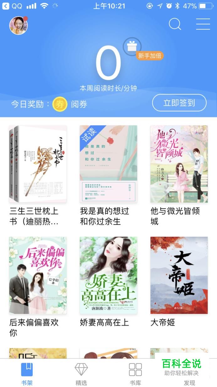 打开QQ阅读,点击左下角的书架就可以打开书架了。