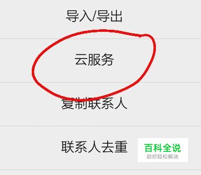 进入“联系人”后,点击手机虚拟功能按键,选择“云服务”
