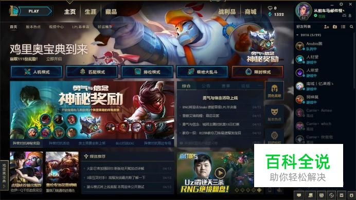 首先登陆LOL游戏客服端,进入之后展现给你的就是游戏大厅。