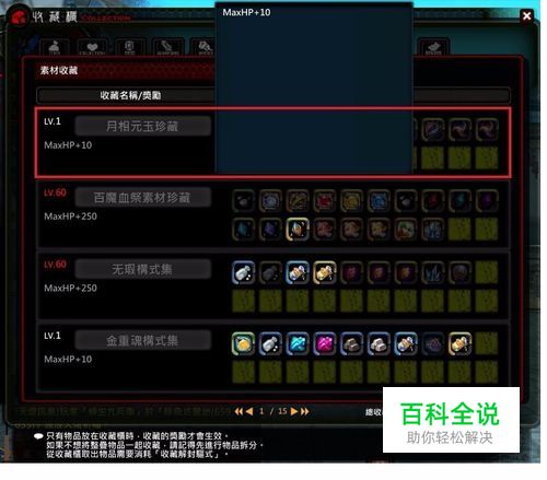 月相玉珍藏 集齊图中条目里的素材,就可以獲得条目名称所示的附加屬性。