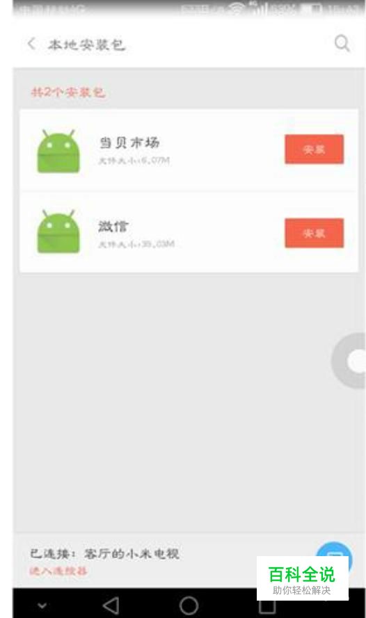 连接成功后回到本地,找到当贝市场的安装包安装当贝市场,这时候电视上就会出现一个小米投屏神器的验证码,这时只要输入手机里的验证码就可以。