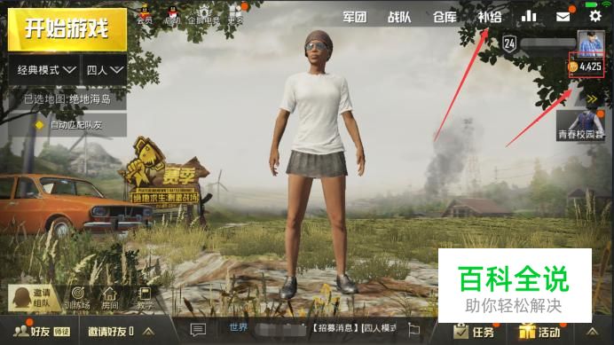第一步登陆吃鸡,点击右上角补给。
