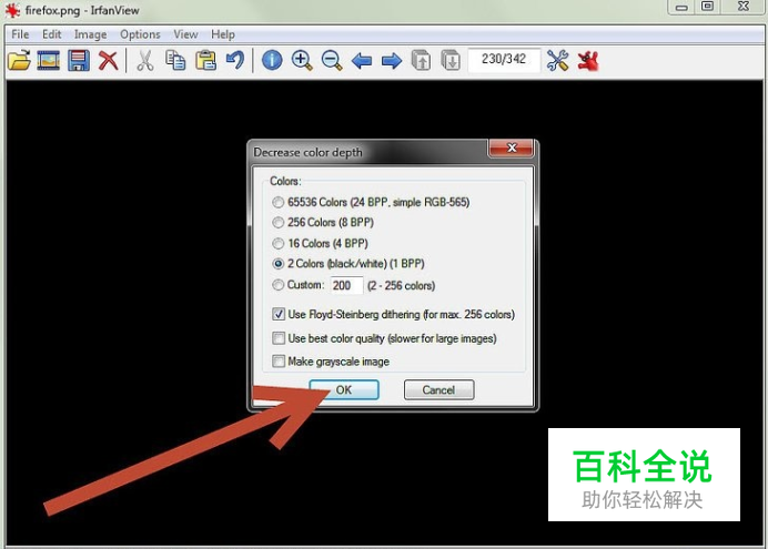确保正确的颜色深度。 再次点击图片。 点击减少颜色深度。 选择颜色编码。 点击确认。
