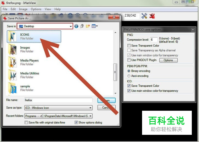 保存图片到你想要的位置,但是要选择ICO(Windows 图标) 文件类型。