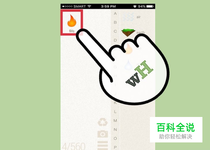 将“火”图标拖曳至“沙”图标上方,然后释放,藉此合成“玻璃”。
