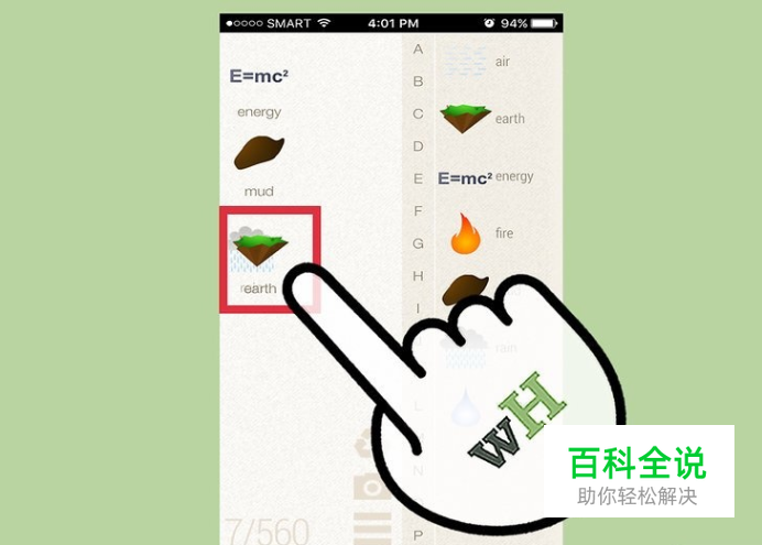 将“水”图标拖曳至“空气”图标上方,然后释放,藉此产生“雨”元素。