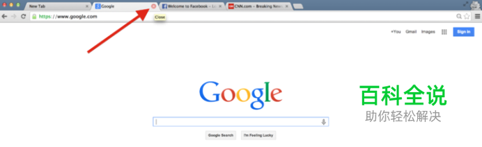 使用你的鼠标或触摸板将指针放在每个浏览器选项卡的“x”上。“x”位于选项卡图标和标题的右侧。