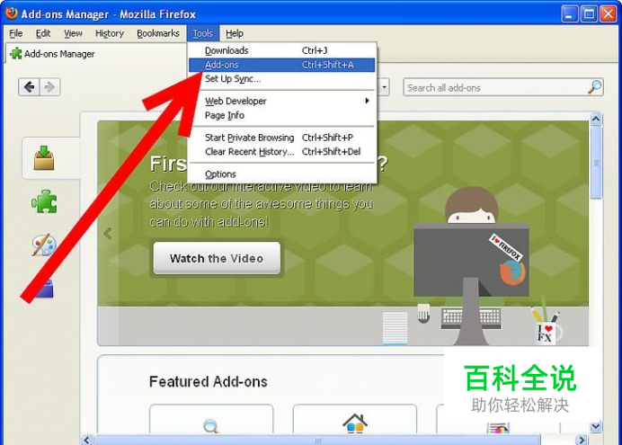 在浏览器中点击“工具”,选择“插件”。在Firefox 20.0 ,从浏览器左上角的Firefox按钮或者直接从首页下部的图标组选择“加载插件”。