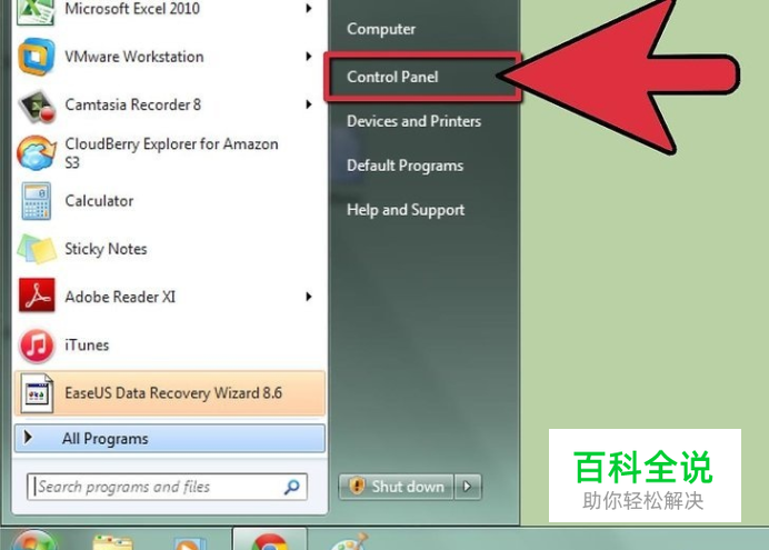 按下“开始”按钮,前往“控制面板”。 在屏幕的右上角,你应该会看到“查看方式:”的选项。如果没有设置为大图标,请先设置成正确的查看方式。