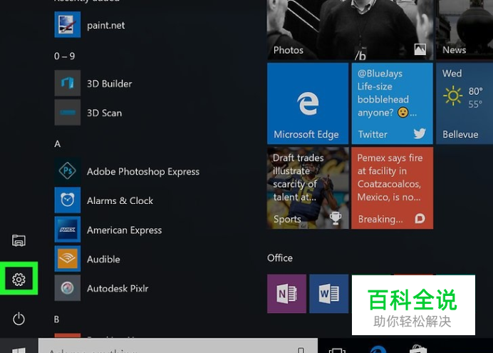 点击设置。这个齿轮状图标位于开始菜单窗口的左下角。
