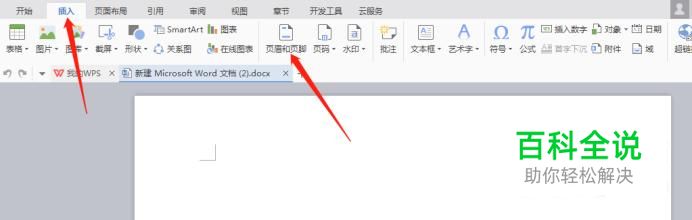 首先打开word文档顶部找到“插入”栏目点开后我们会看到“页眉和页脚”点击进入 如图