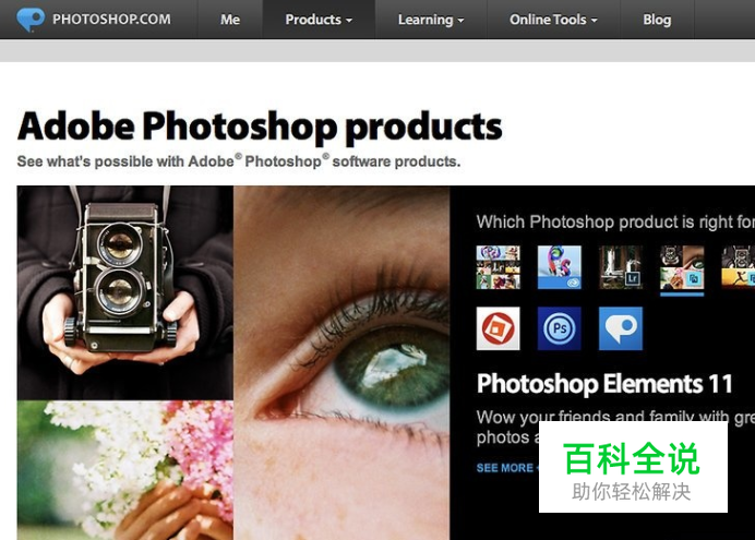 进入Adobe Photoshop的下载页面。你会看到一些商业产品。向下滚动,直到你看见Photoshop Express的链接。