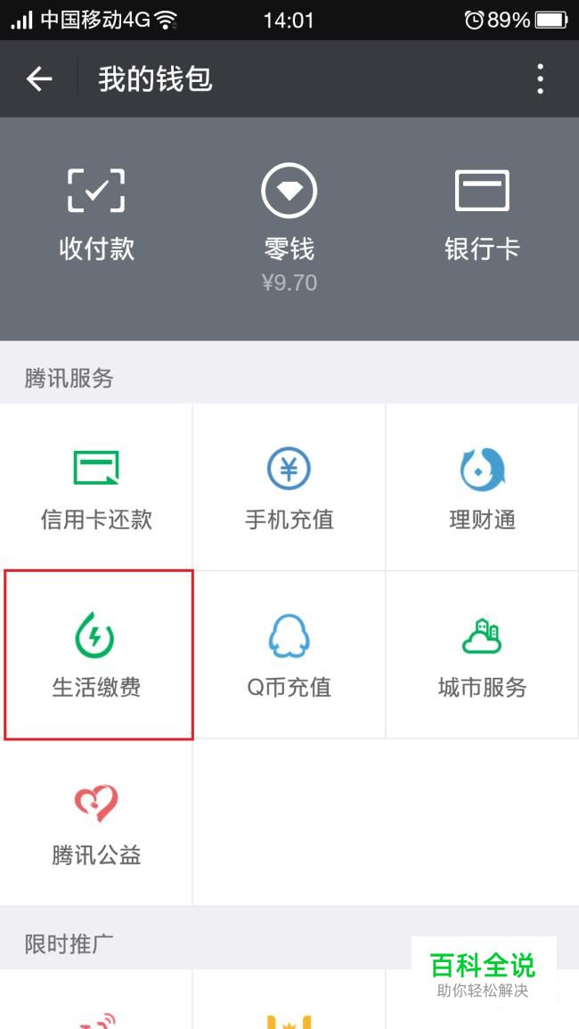 进入钱包后,我们可以看到有一项【生活缴费】,我们点击它。
