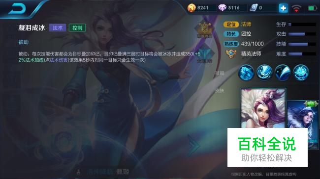 先熟悉技能,被动-凝泪成冰,被动技能打出的伤害是甄姬伤害输出的核心技能,还可以造成额外的法术伤害。一旦再团战中甄姬的被动技能被触发,那么随之而来的就是队友的疯狂输出。当印记叠满三层时被锁定的攻击目标会被冰冻并且造成伤害