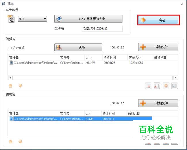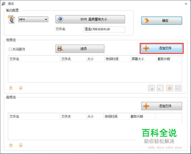 点击“音频流”后的“添加文件”;导入需要添加的背景音乐