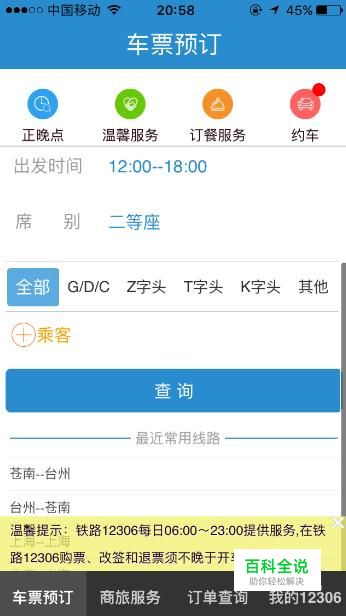 之后设置好所乘火车的类型(高铁、动车、特快、普快等),全部设置好后点击查询按键。