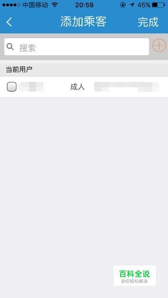 接着在“添加乘客”页面选中所乘乘客的信息,选中后点击右上角的完成按键。
