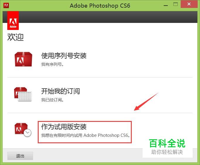 经过些许等待在弹出的对话框内选择作为试用版安装选项,如图所示: