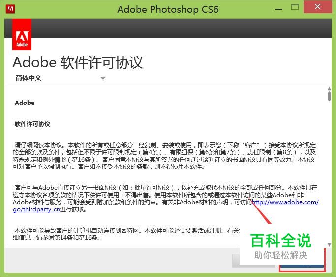 点击作为试用版安装选项,在弹出的对话框内找到接受选项,如图所示: