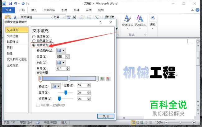 在设置文本格式框找到“渐变光圈”中的“调节渐变样式”,用鼠标拖上面的滑块调节文档所需要的调节渐变样式