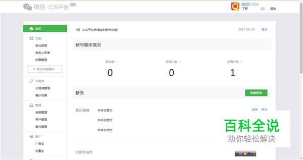 首先我们打开微信公众平台,进入到主界面,如图所示。