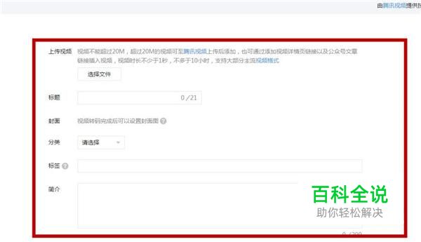 最后我们在视频素材编辑中上传视频文件,并输入标题、封面、分类、标签、简介,最后保存即可,如图所示。
