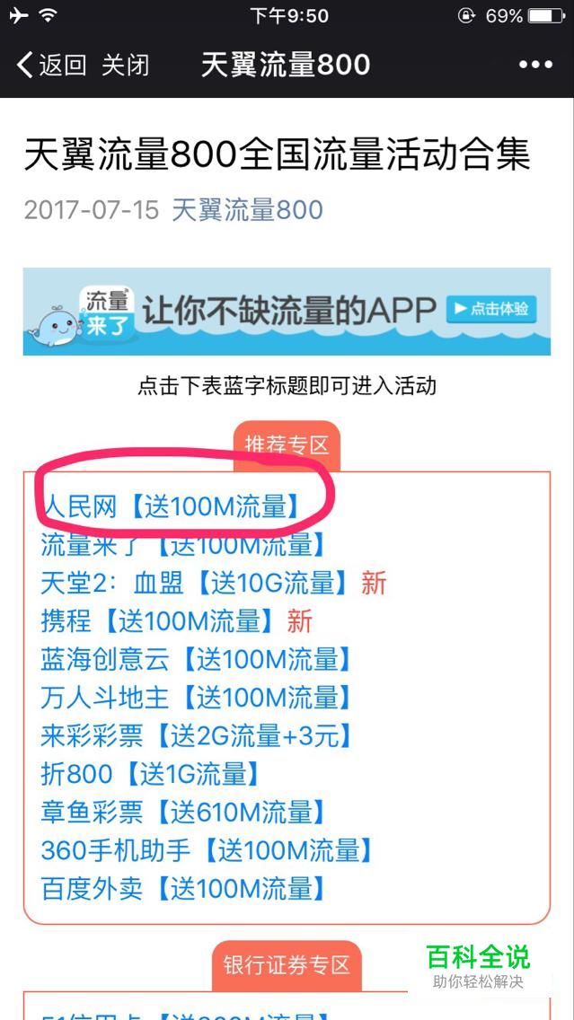 选择人民网【送100M流量】(其余活动也可以选择参加)。