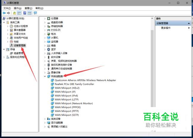 打开“设备管理器”,在右边的列表里找到“网络适配器”,并点击展开。