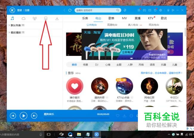 打开电脑上的酷狗音乐软件。点击左上角的“手机”图标。