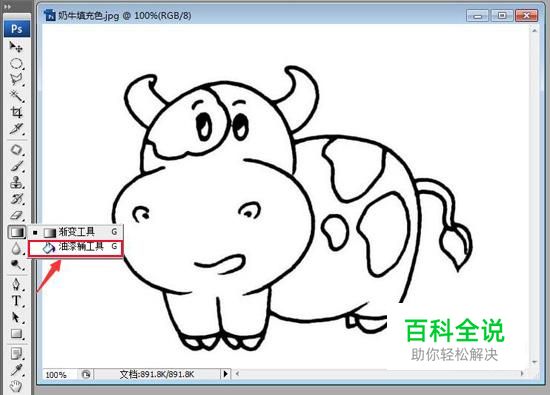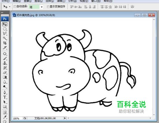 首先,在PS中打开需要填充颜色的图像,这里以一头奶牛为例。