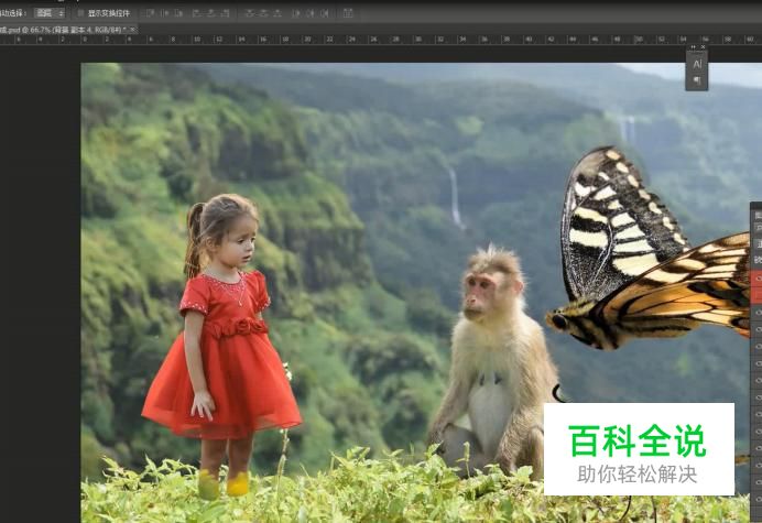 但我们在移动多个图层拼贴的图像就会出现非常大的错误,这里可以看到我们的蝴蝶散开了。