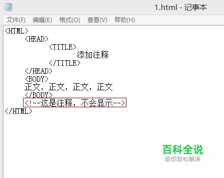 添加注释的格式为开始标记符“<!--”和结束标记“-->”,“<!--”标记符和“-->”标记符之间的任何内容都将被浏览器解释为注释,而不在浏览器中显示。