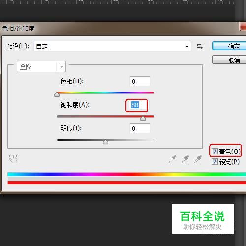 菜单栏:执行“图像”-“调整”-“色相/饱和度”命令,参数如下。