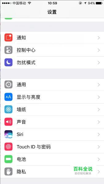 点击设置之后,我们这就来到了设置界面上了,在设置界面上用手指往上滑,眼睛盯着屏幕下面找,找到"通讯录"选项。