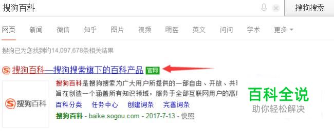在搜狗搜索中输入“搜狗百科”,如图所示
